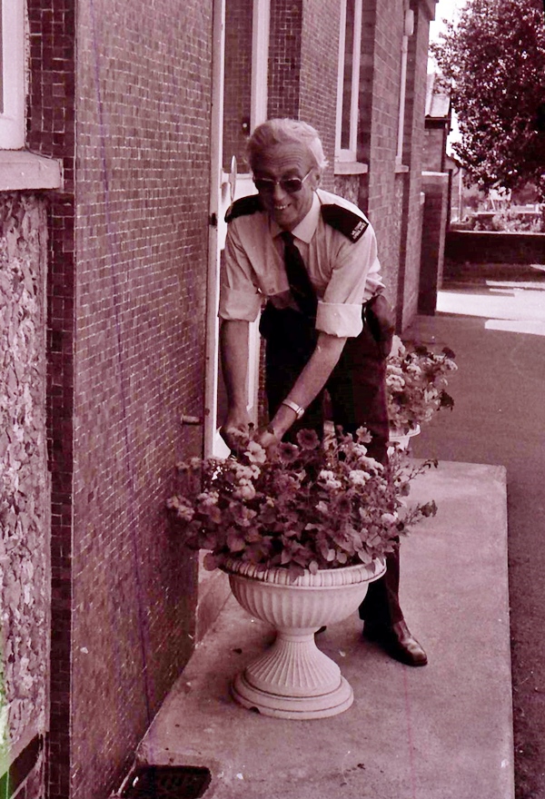 (C198) Ambulance driver trimming the flowers at the ambulance station on the Hilperton Rd.
