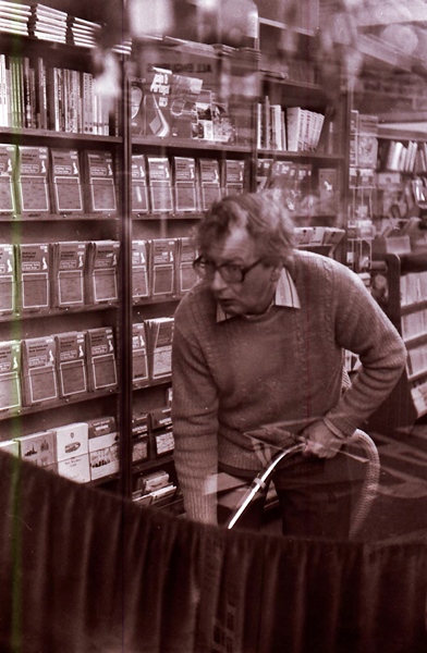 (A212) Mat Mathau at 7 Day shop opposite Conservative Club, Trowbridge.